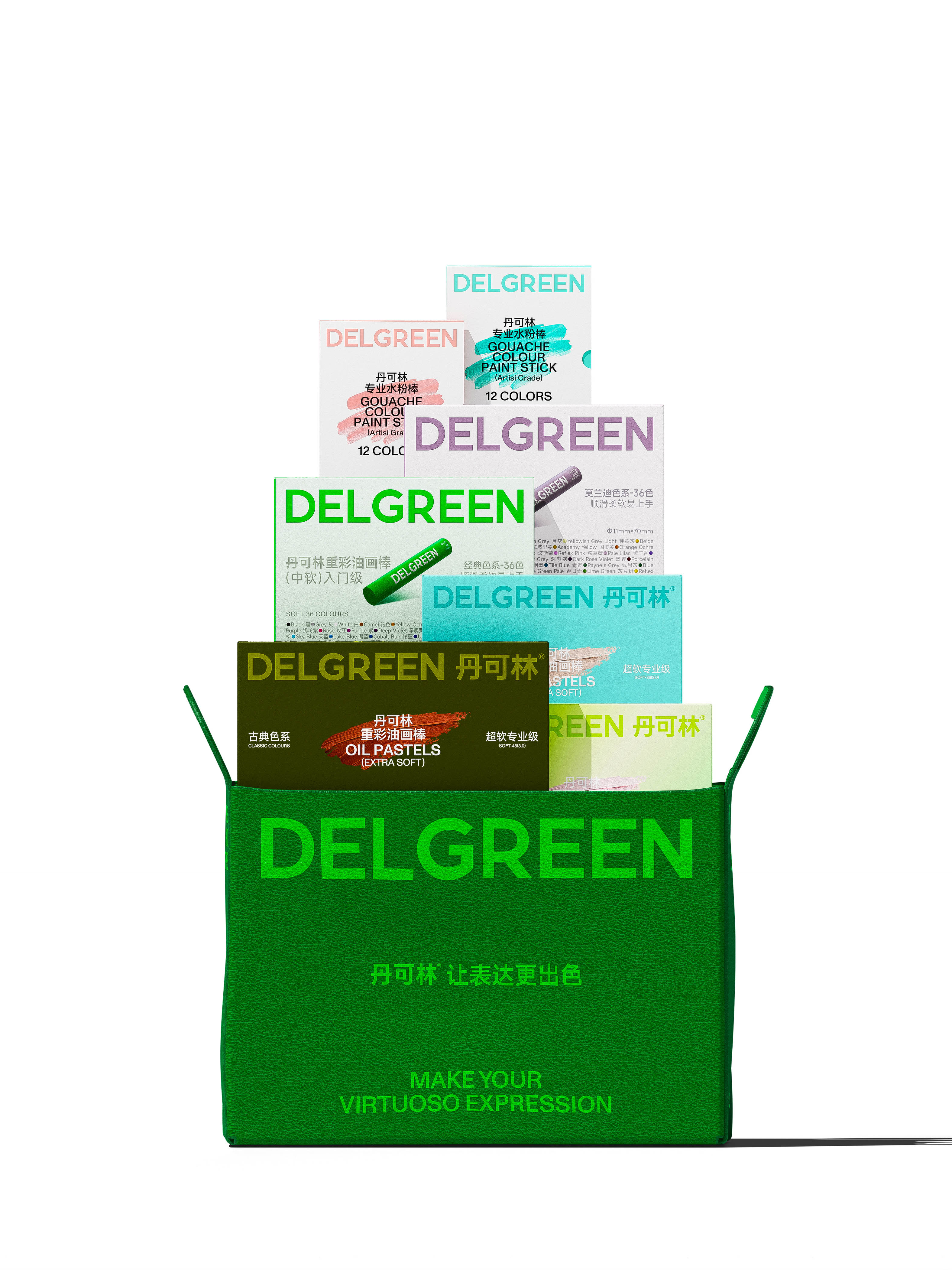 DELGREEN, the pioneering brand of heavy-color oil pastels. DELGREEN was born in Europe and developed in China. It is a company dedicated to the research, development, production and sales of heavy-color oil pastels and other art education products. The brand name cleverly incorporates the rhyme of "Devil", which implies endless creativity and the adventurous spirit of exploration, while "GREEN" symbolizes environmental protection and vitality. This is not only the brand core of DELGREEN, but also its firm commitment to the concept of safety, environmental protection, professionalism and high-quality products.